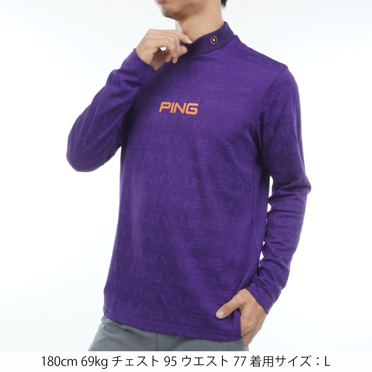 ピン PING ロゴジャカード ハイネック長袖シャツ M パープル 080