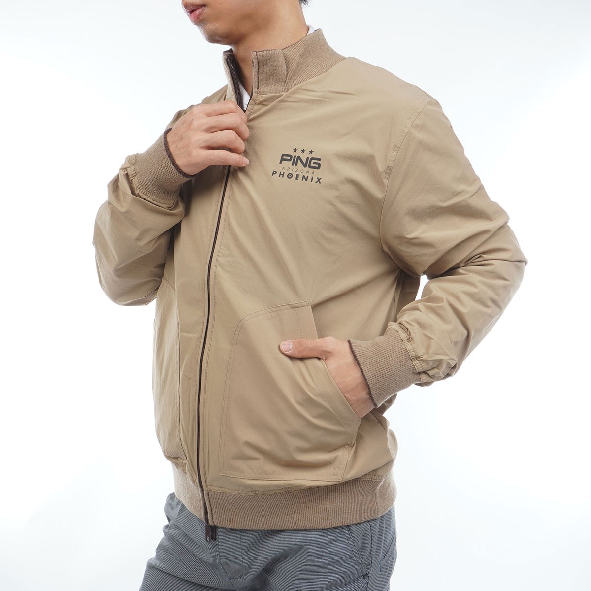 ピン PING リバーシブル フルジップニットブルゾン L ブラウン 050
