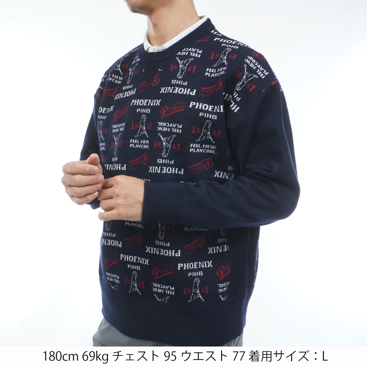 ピン PING ジャカードクルーネックセーター LL ネイビー 120