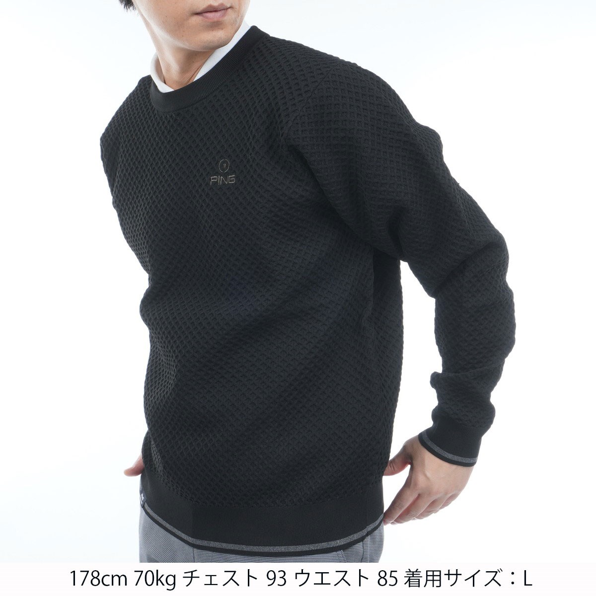 ピン PING ハチノス編み ストレッチクルーネックセーター M ブラック 010