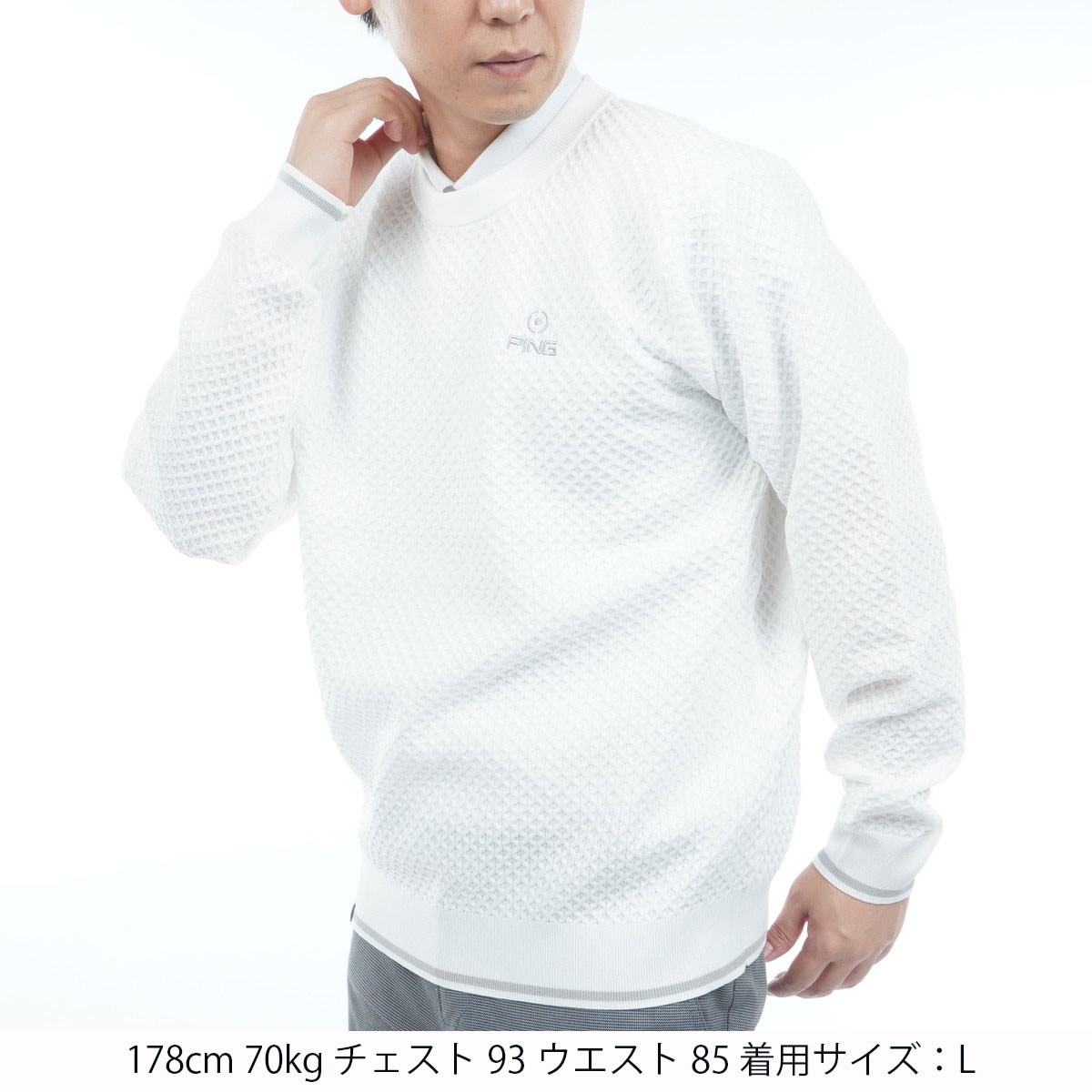 ピン PING ハチノス編み ストレッチクルーネックセーター L ホワイト 030