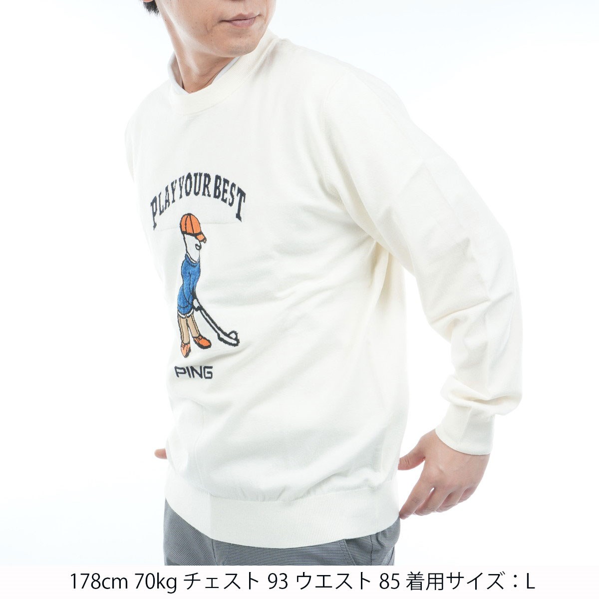 ピン PING Mr.PING ジャカードクルーネックセーター M ホワイト 030