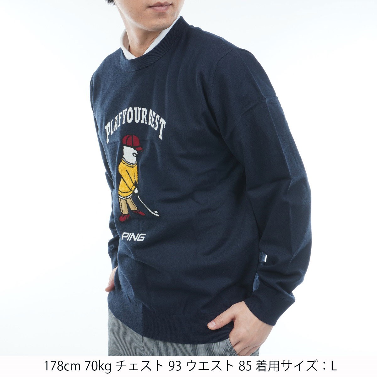 ピン PING Mr.PING ジャカードクルーネックセーター 3L ネイビー 120