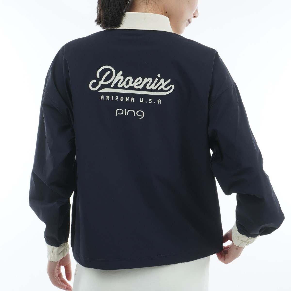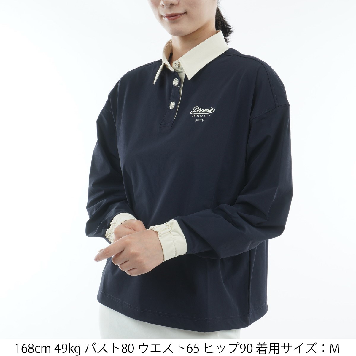 ピン PING 長袖オーバーポロシャツ L ネイビー/ホワイト 121 レディス