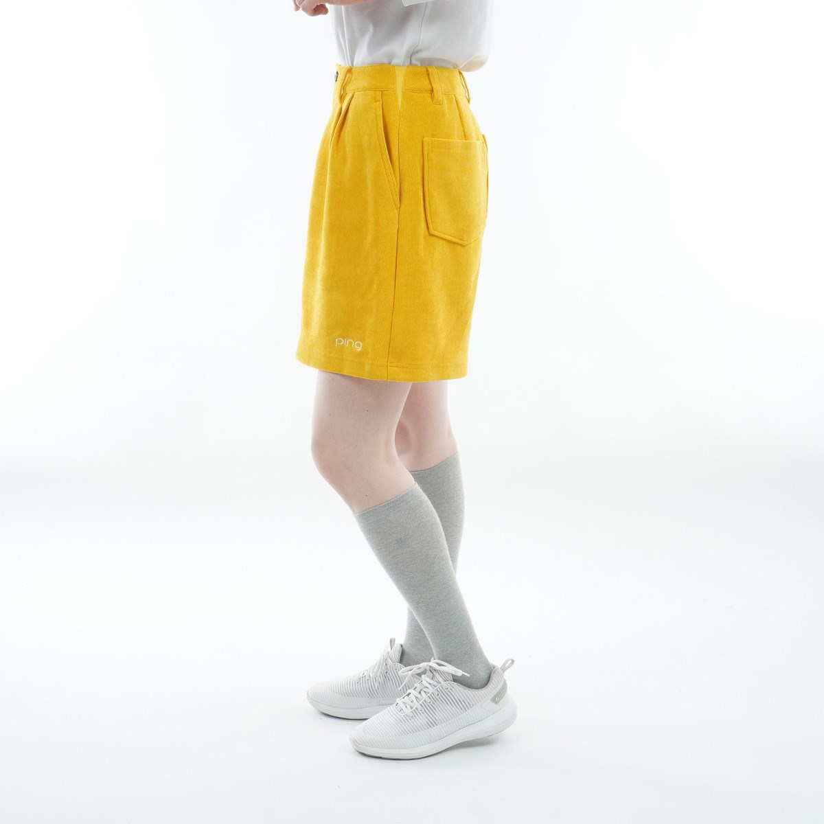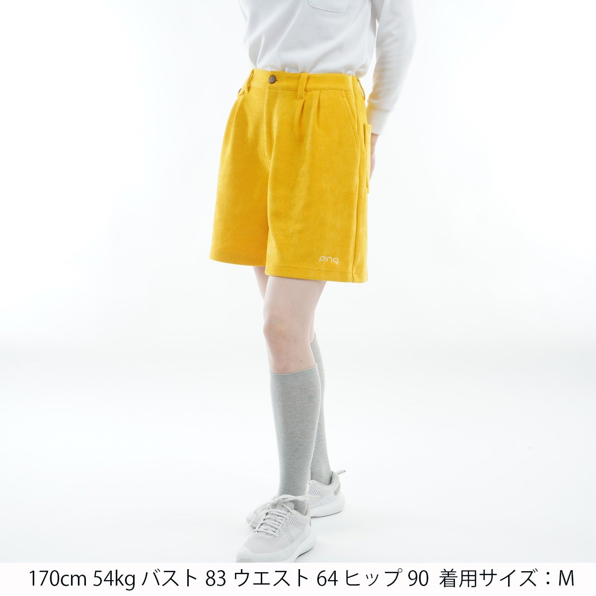 ピン PING ニットコーデュロイ ツータックキュロットパンツ M イエロー 060 レディス