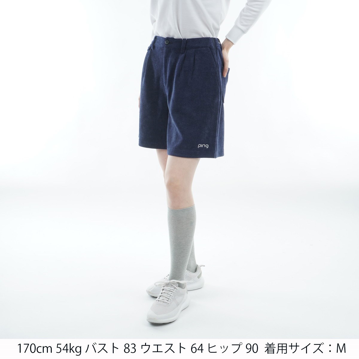 ピン PING ニットコーデュロイ ツータックキュロットパンツ S ネイビー 120 レディス