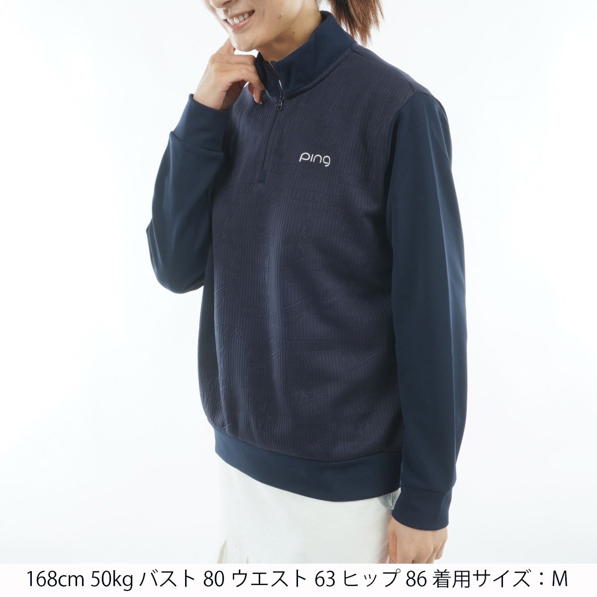 ピン PING キルトジャカード ハーフジッププルオーバー M ネイビー 120 レディス