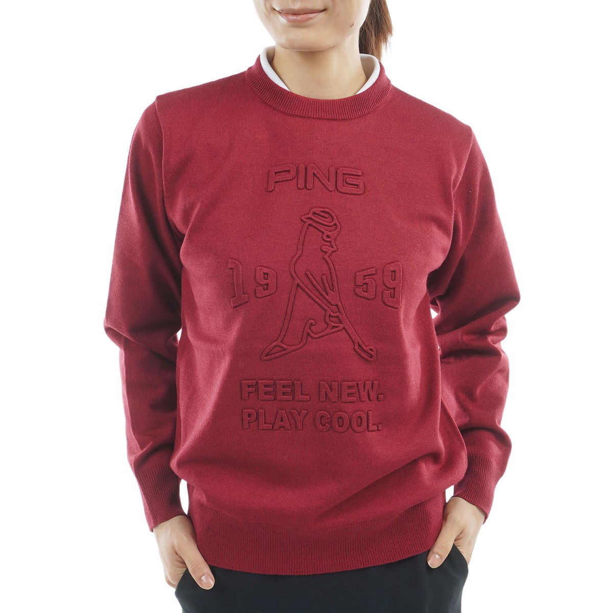 ピン PING ウールライク クルーネックセーター L ホワイト 030 レディス