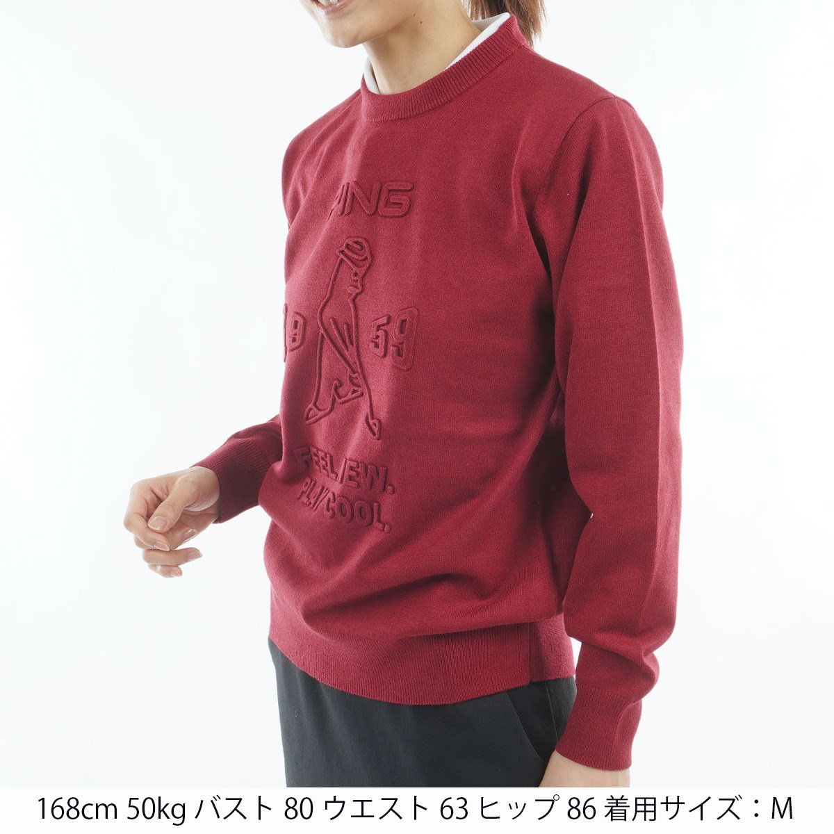 ピン PING ウールライク クルーネックセーター LL レッド 100 レディス