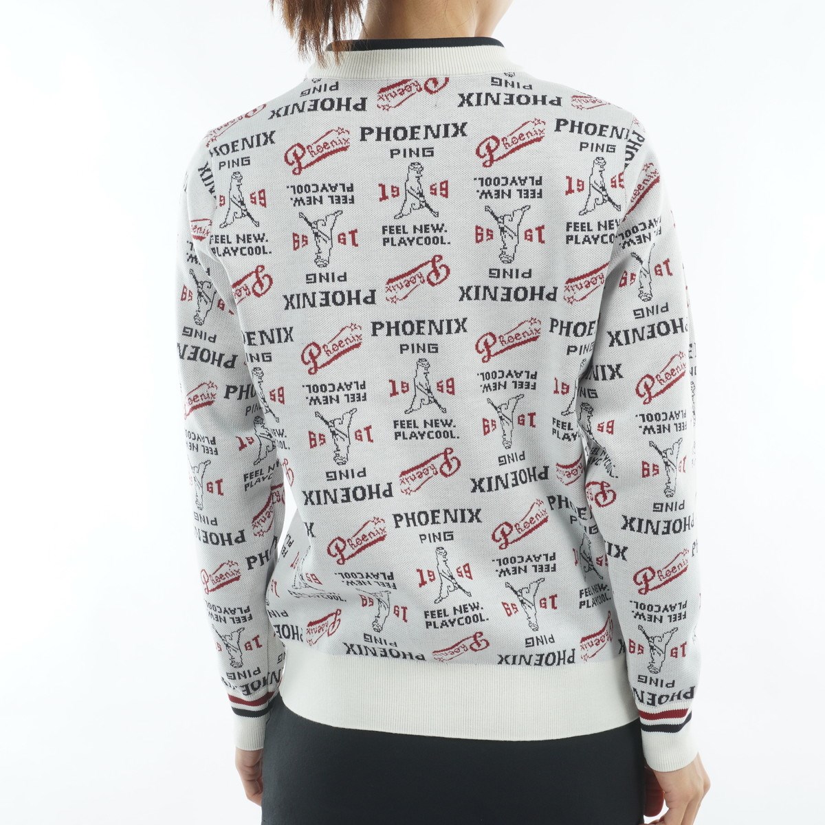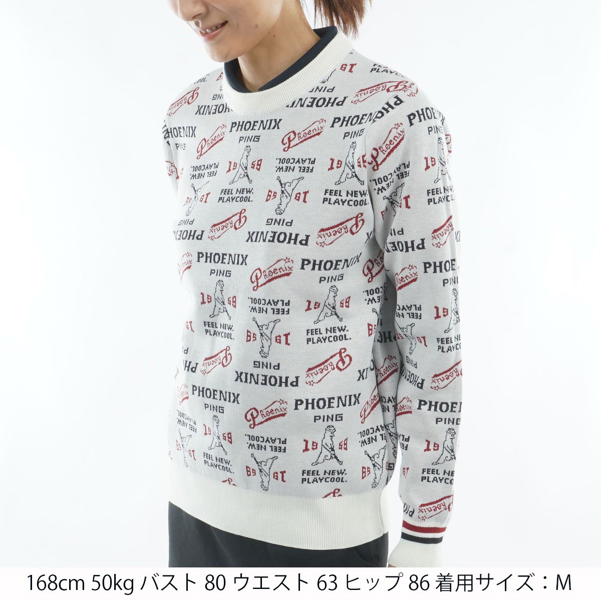 ピン PING 総柄クルーネックセーター M ホワイト 030 レディス