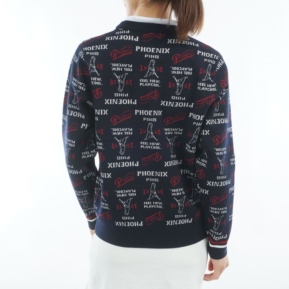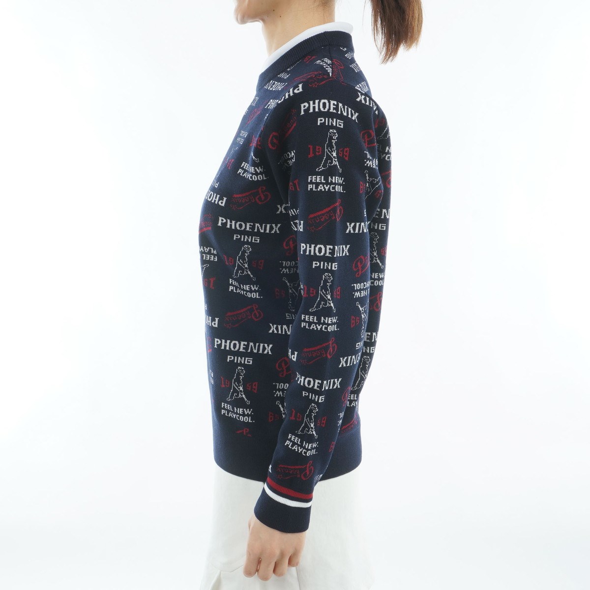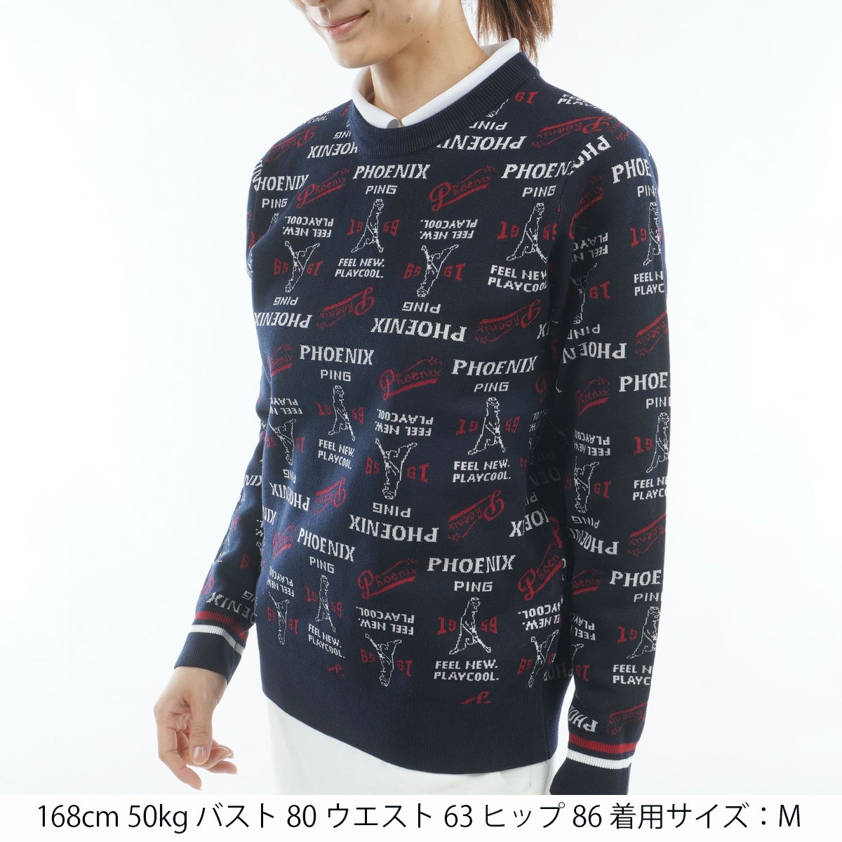 ピン PING 総柄クルーネックセーター M ネイビー 120 レディス