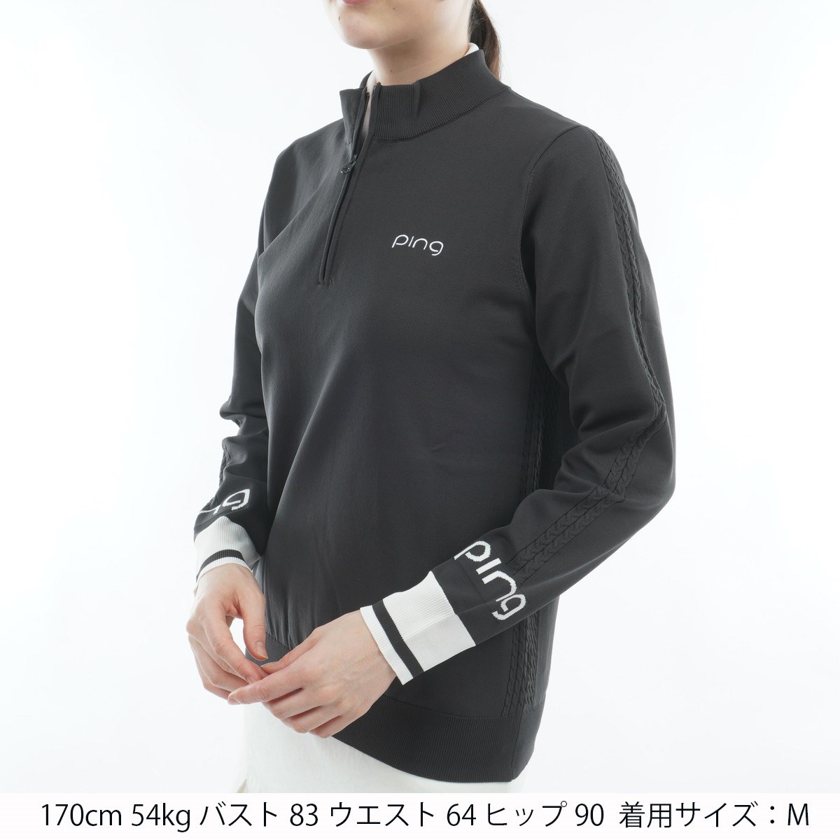ピン PING ハーフジップ 袖ロゴジャカードセーター M グレー 020 レディス