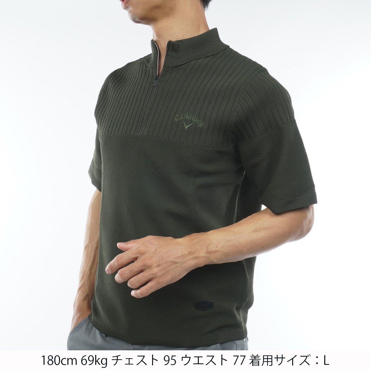 キャロウェイゴルフ Callaway Golf ハーフジップモックネック半袖ニットシャツ M カーキ 1180