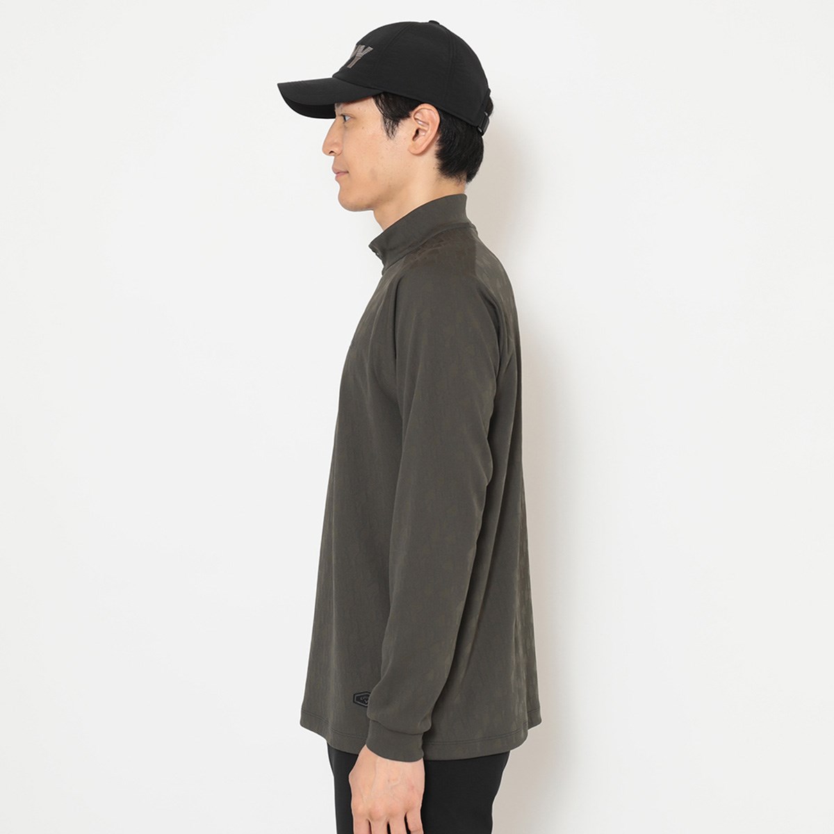 CLWYを立体感のあるジャカードで表現したハーフジップのモックネックシャツです。