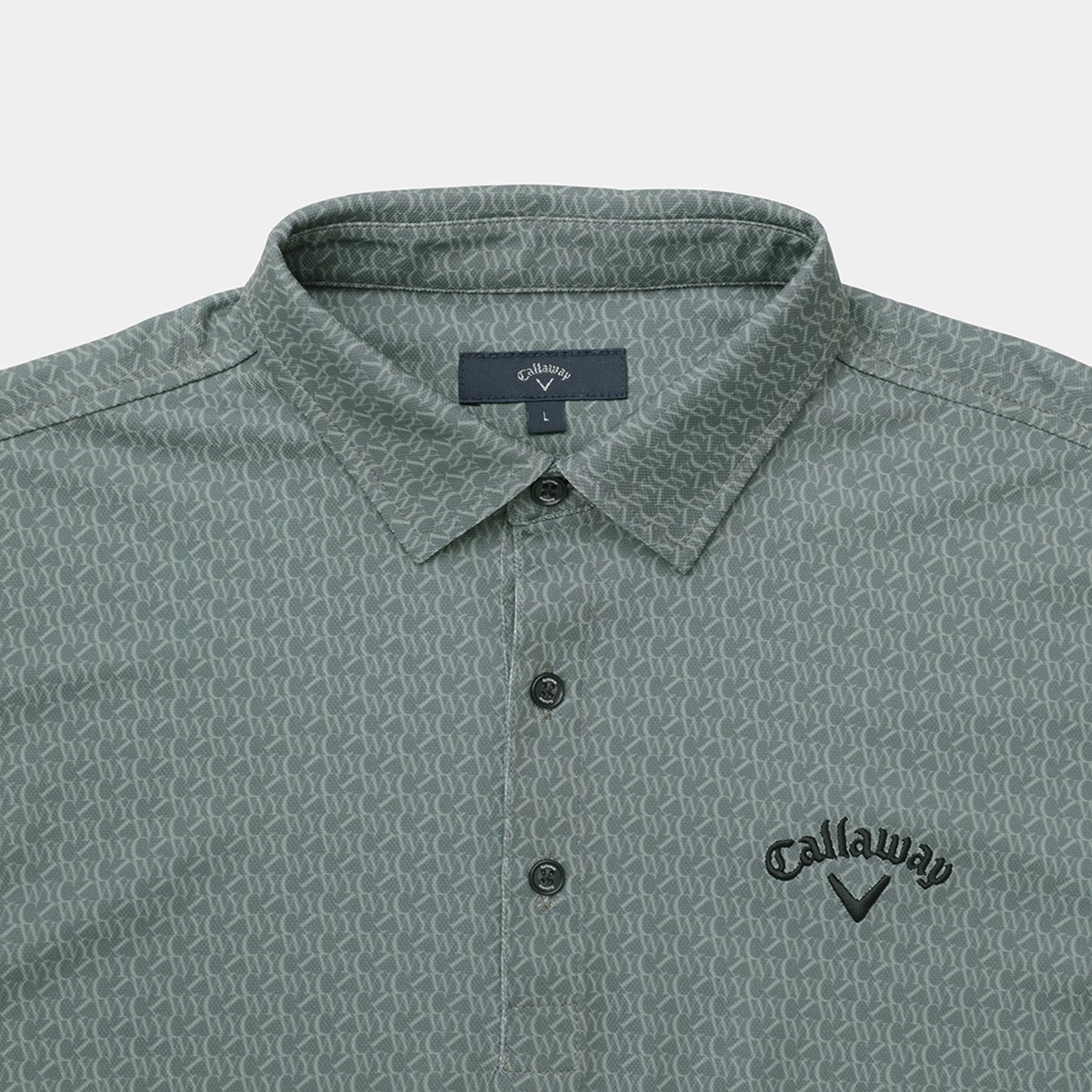 凹凸のある組織感の鹿の子目に、CLWYロゴを総柄でプリントしたポロシャツです。