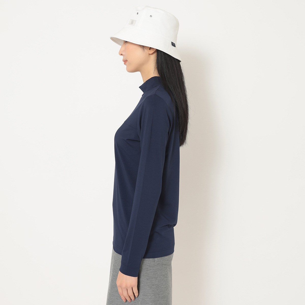 2025年春夏から継続のストレッチ性の高いスムース素材使用のモックネック長袖シャツです。
