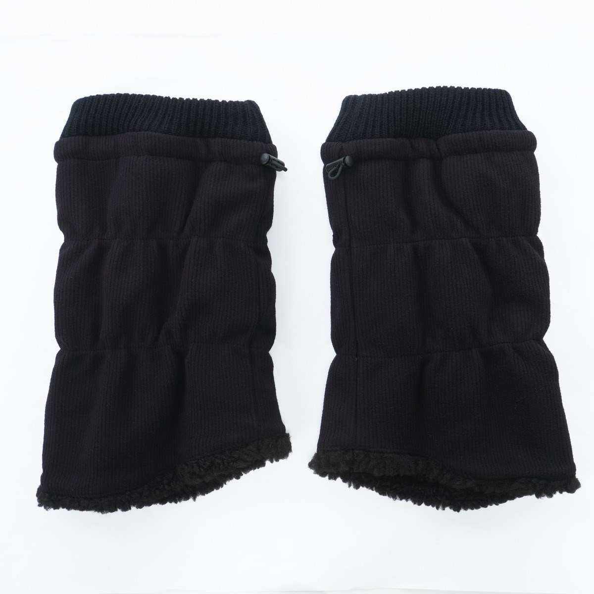 コーデュロイとボアのリバーシブルショートレッグウォーマー。