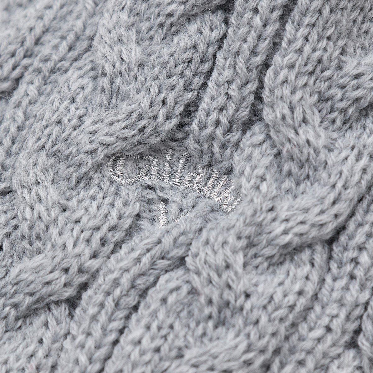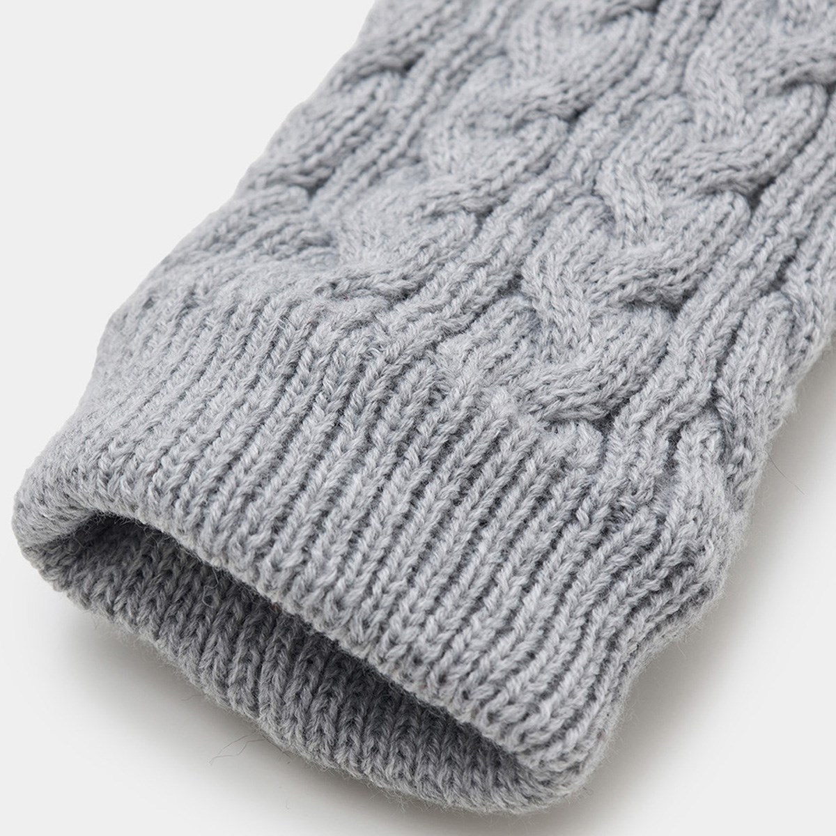 内側フリース素材で仕立て保温性が高く、シンプルなケーブル編みが上品なデザインです。