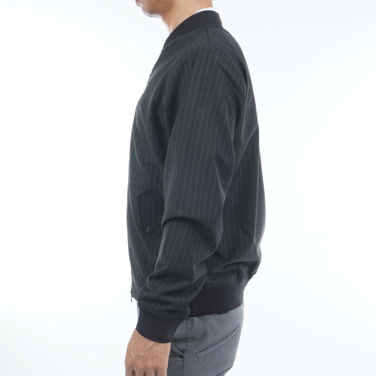ピンストライプのシックな雰囲気ながら、フルジップやリブジョイントでスポーティブに仕上げたデザイン性の高い一着です。