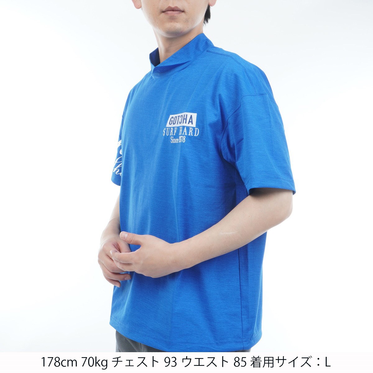 ガッチャゴルフ GOTCHA GOLF ハイブリッド 多機能ドロップショルダーモックネック半袖Tシャツ L ブルー 075