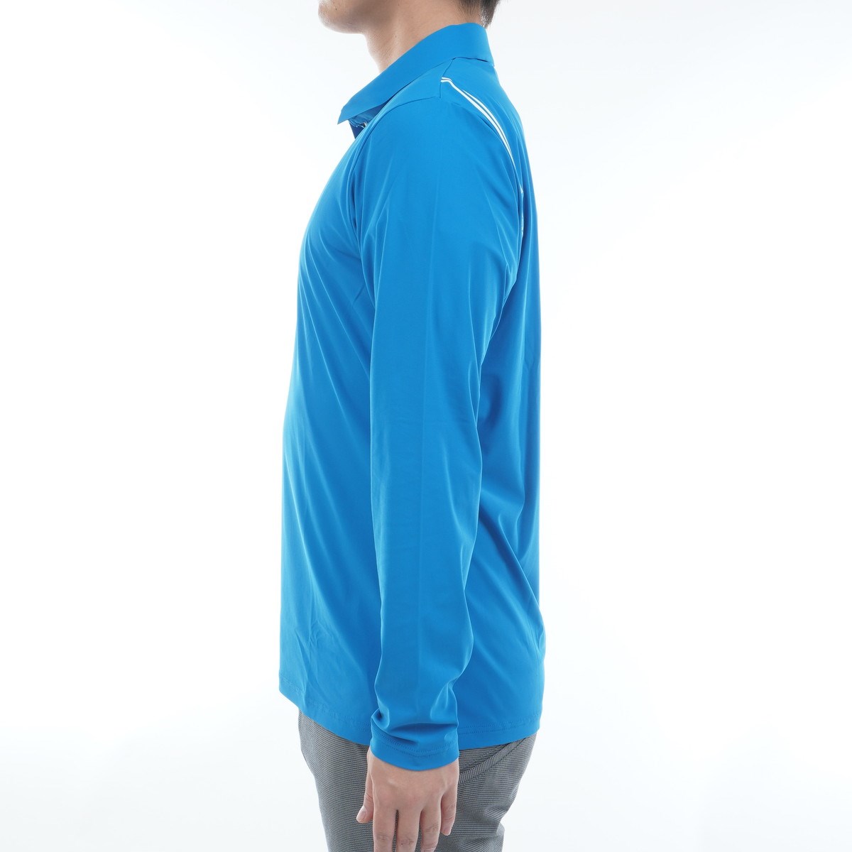 ハリ感とソフトさを両立するストレッチ吸水速乾素材の長袖ポロシャツです。