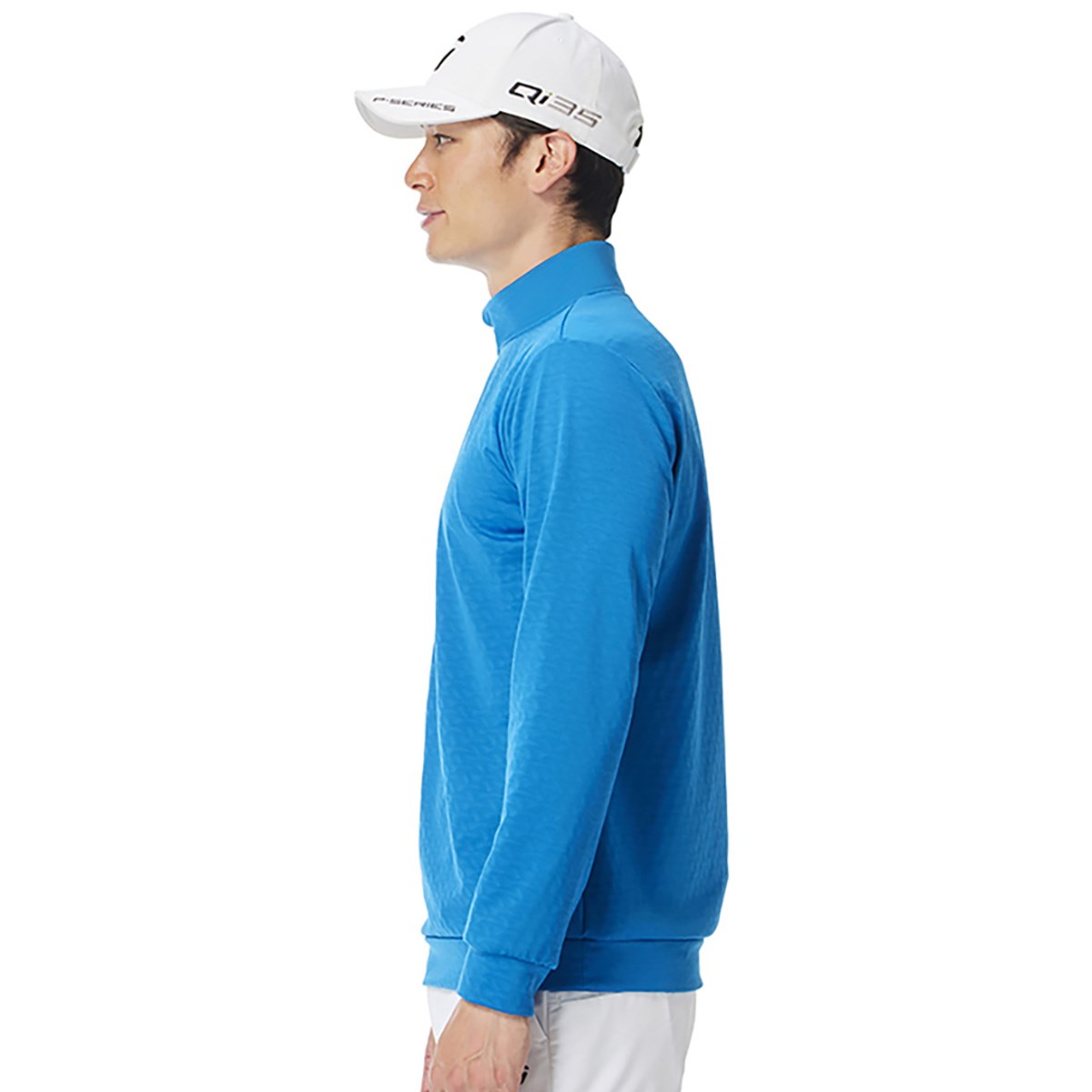 裏面が凹凸のあるフリース素材で柄表現されたハーフジップのミッドレイヤーです。