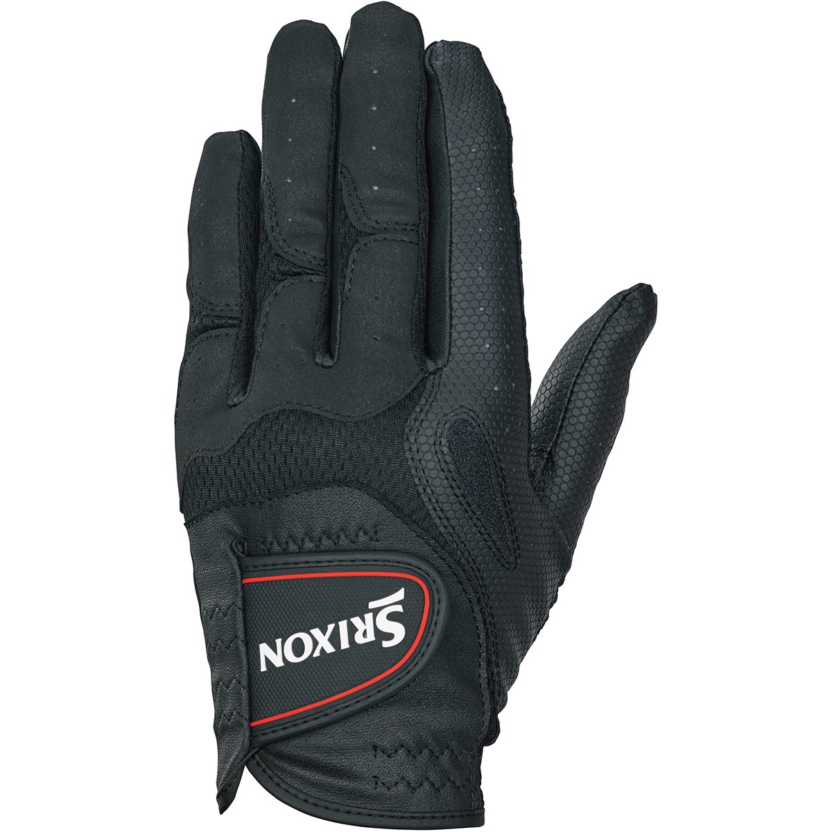 エンボス加工したグリップ力の高い合成皮革を掌の広範囲に採用し、強力なグリップ力を発揮。
