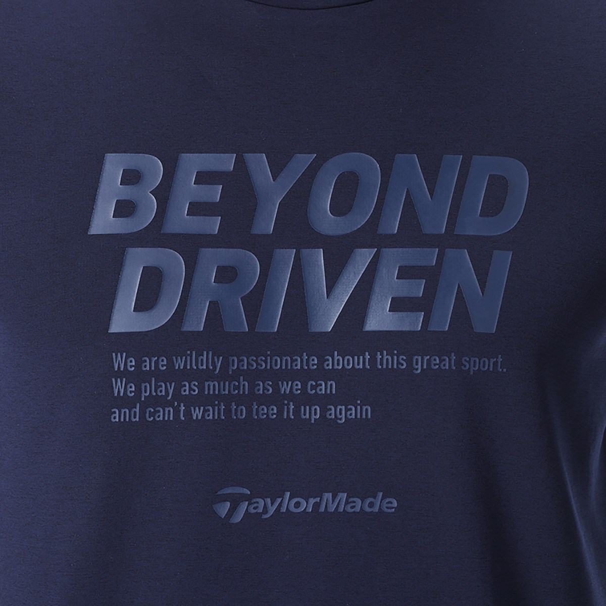 ブランドのテーマであるBeyond Drivenの文字がグラフィック化され、前面にプリントされたモックネック長袖シャツです。