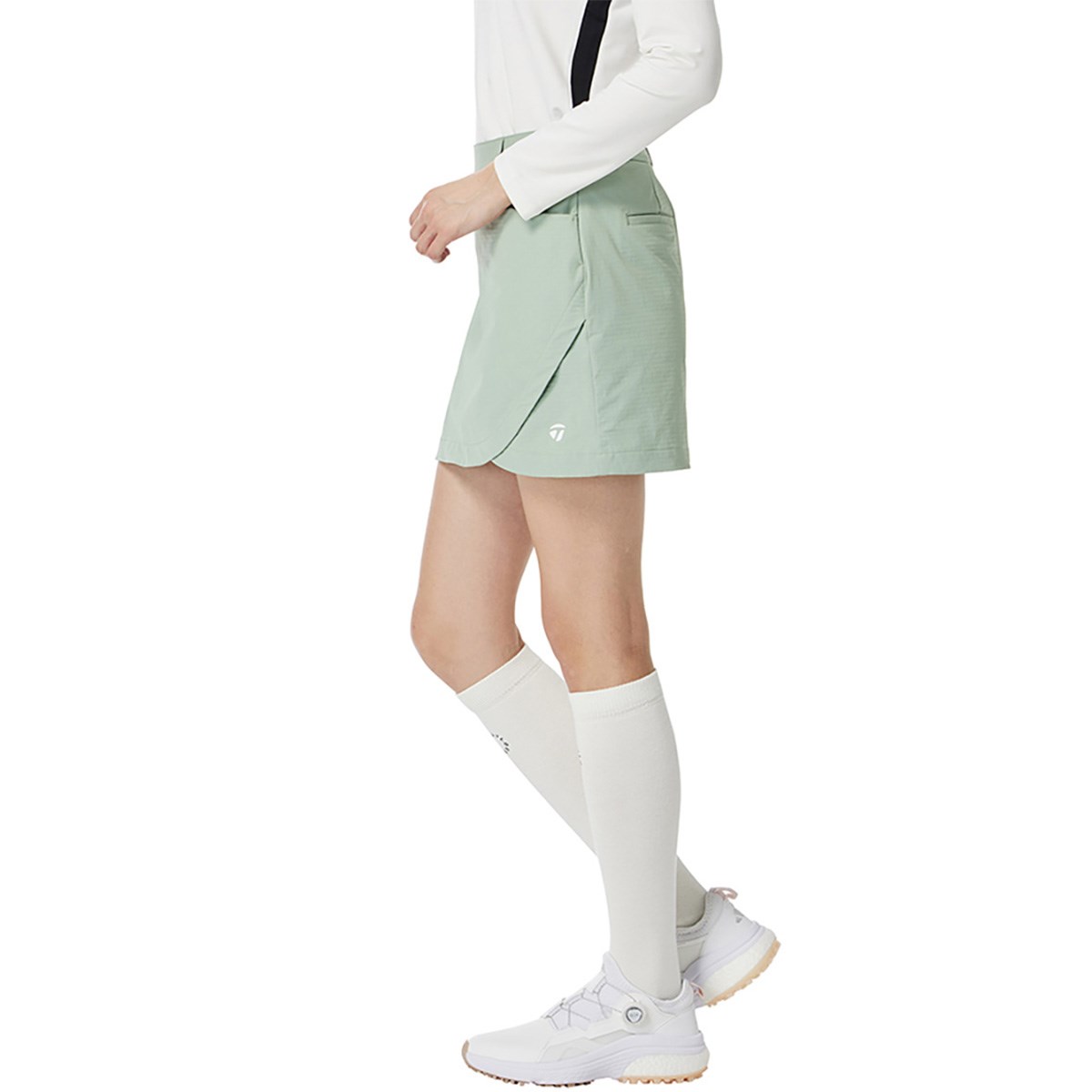 曲線を描いたスリットがフェミニンな印象のスコートです。