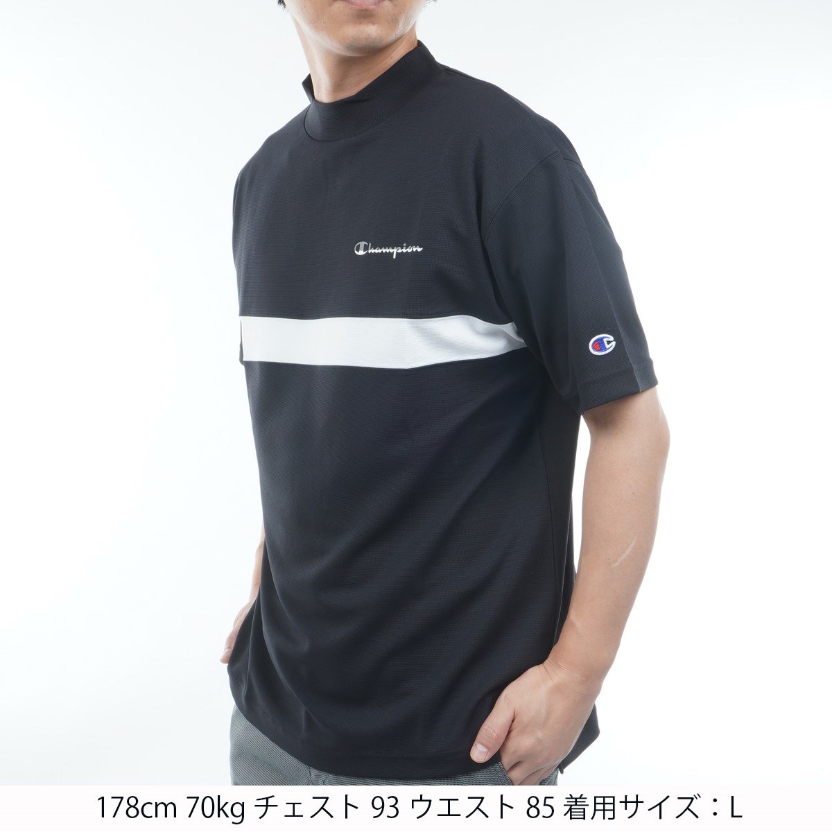 チャンピオンゴルフ Champion GOLF ドライグリッドジャージ モックネック半袖シャツ M ブラック 090