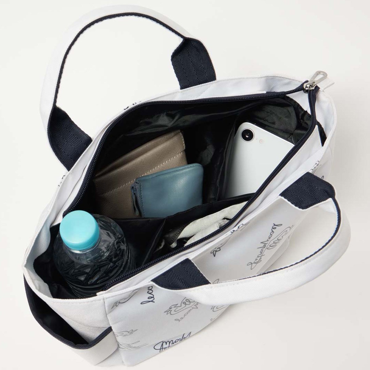 中の仕切りを多くすることで、化粧ポーチ、タオル、ペットボトル、スマートフォン、グローブなどを分けて収納できる便利な仕様。