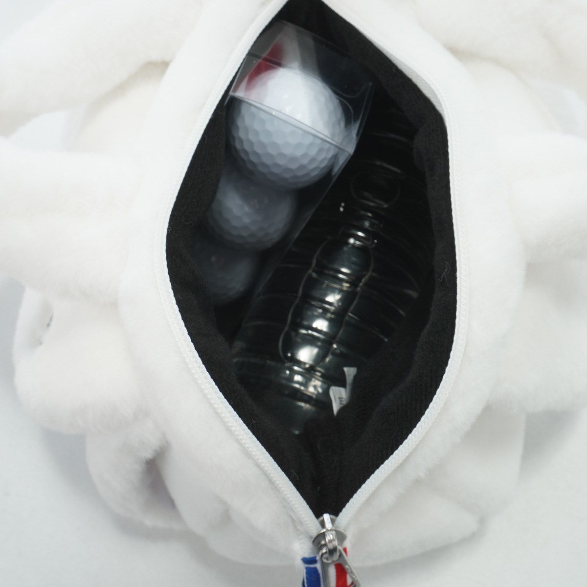 ブランドロゴがある羽の裏側は手を入れられるようになっており、寒い日のカート移動の際にはハンドウォーマーとしても活躍できるアイテム。