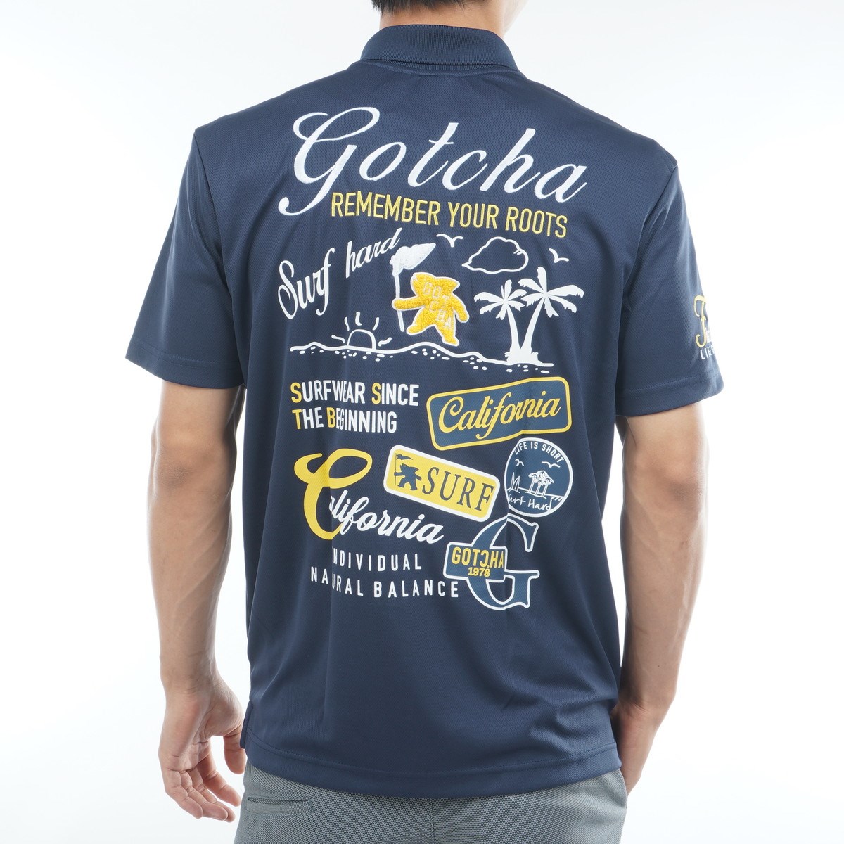 ガッチャゴルフ GOTCHA GOLF ドライメッシュ サマードローイング半袖ポロシャツ M ネイビー 078
