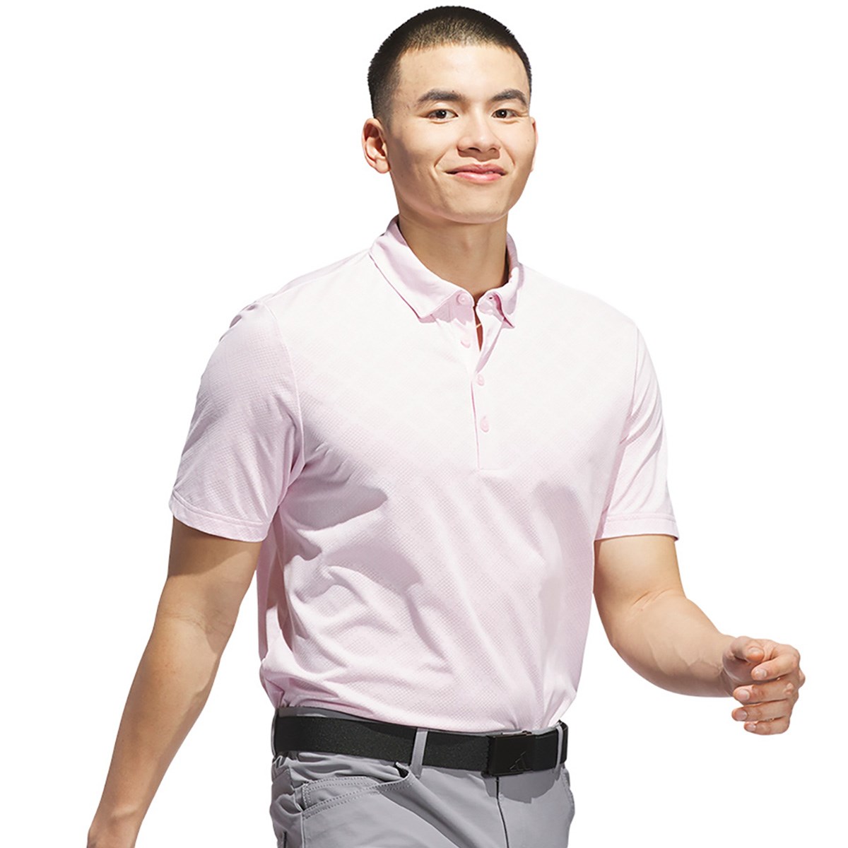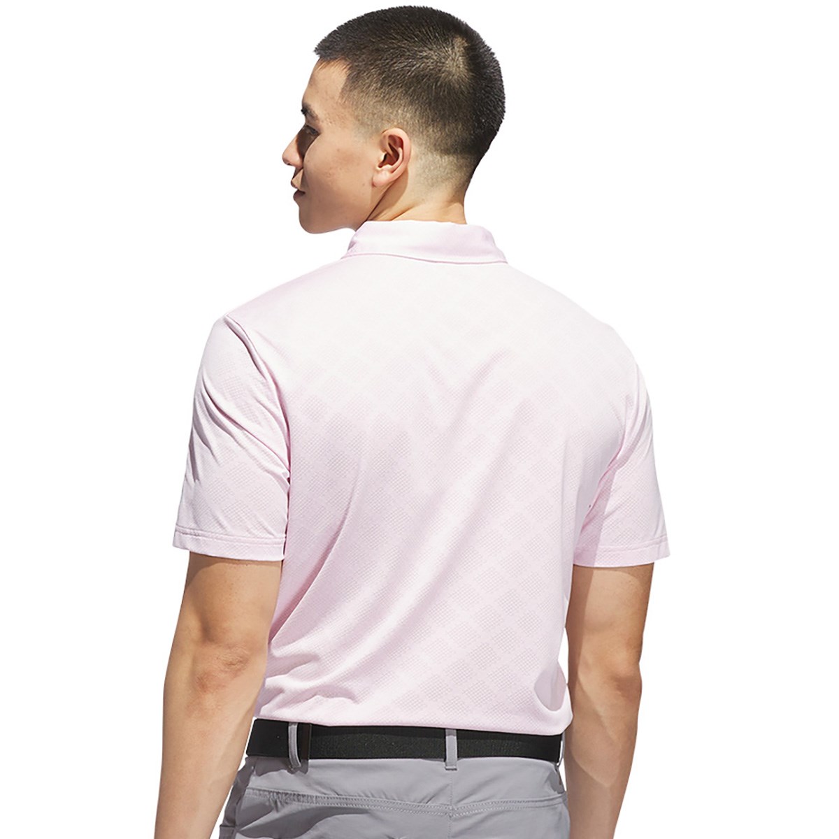 ストレッチ性の高い素材を使用してジャガードデザインをほどこした半袖ポロシャツ。