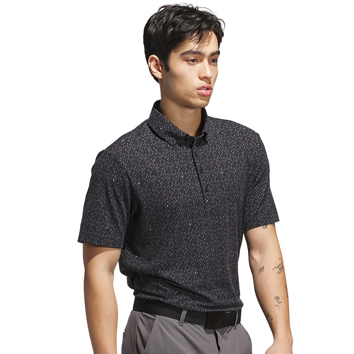 アディダス Adidas ストレッチ マイクロ アーガイル グラフィック 半袖ボタンダウンポロシャツ J/M ブラック/カーボン