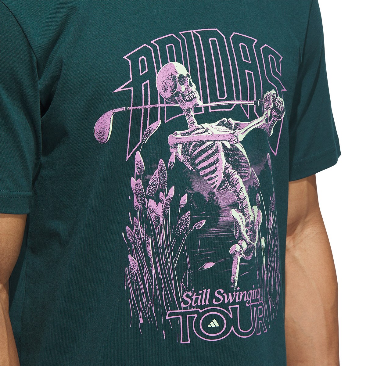 両面にゴルフグラフィックが大きくプリントされた半袖Tシャツ。