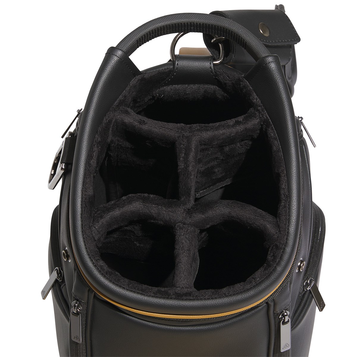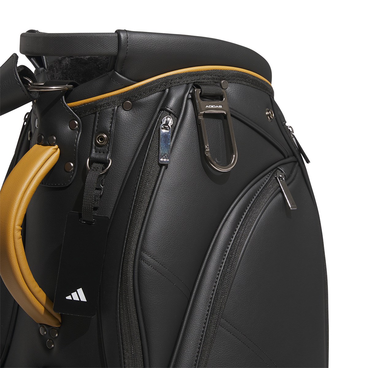 レザーのような質感の合成皮革で、優れた耐久性とスタイリッシュなルックを両立したカートキャディバッグ。