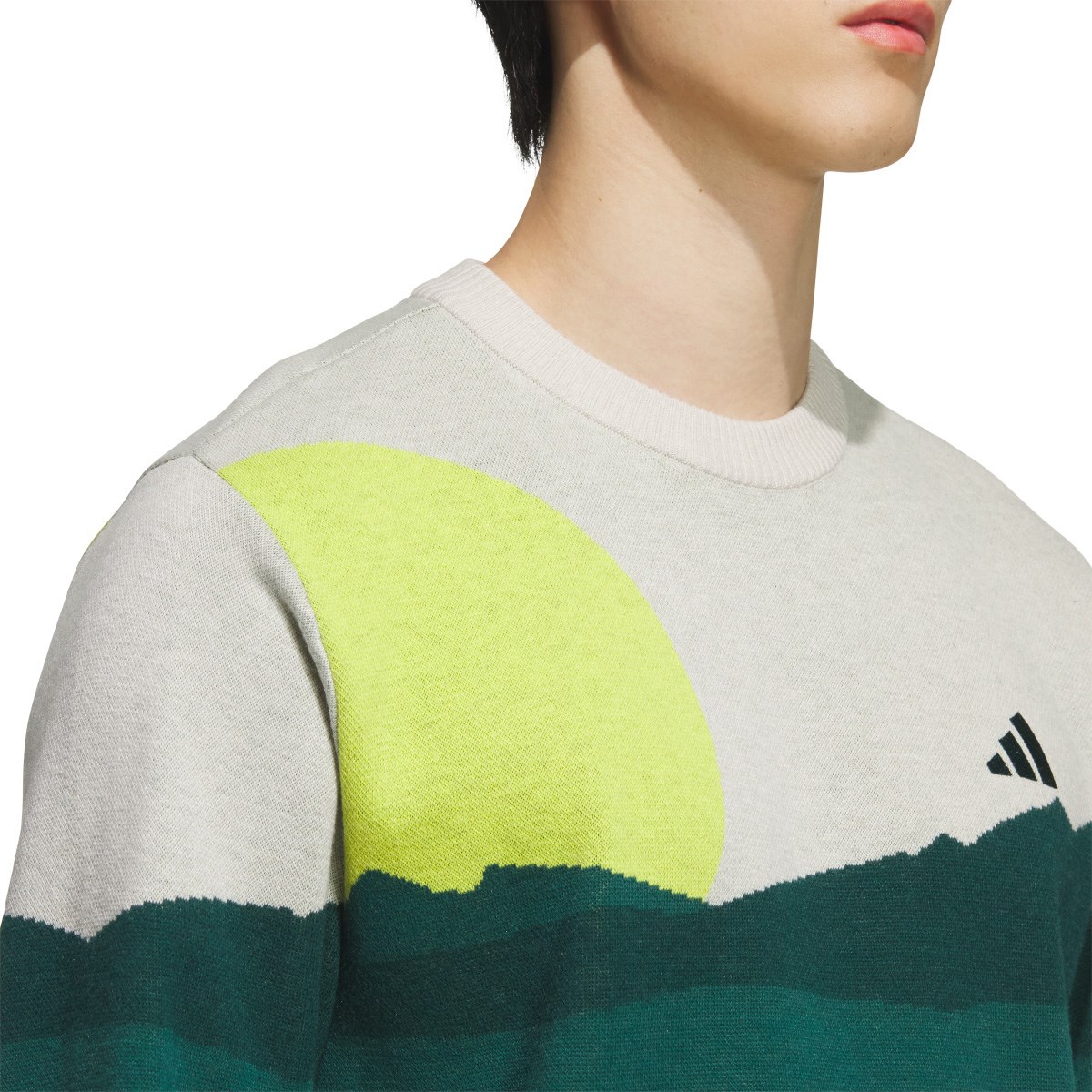 大胆なゴルフコースのグラフィックが目を引くクルーネックセーター。