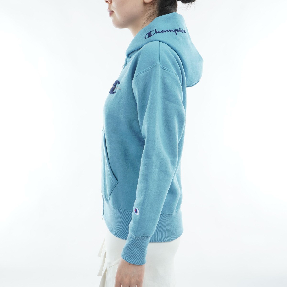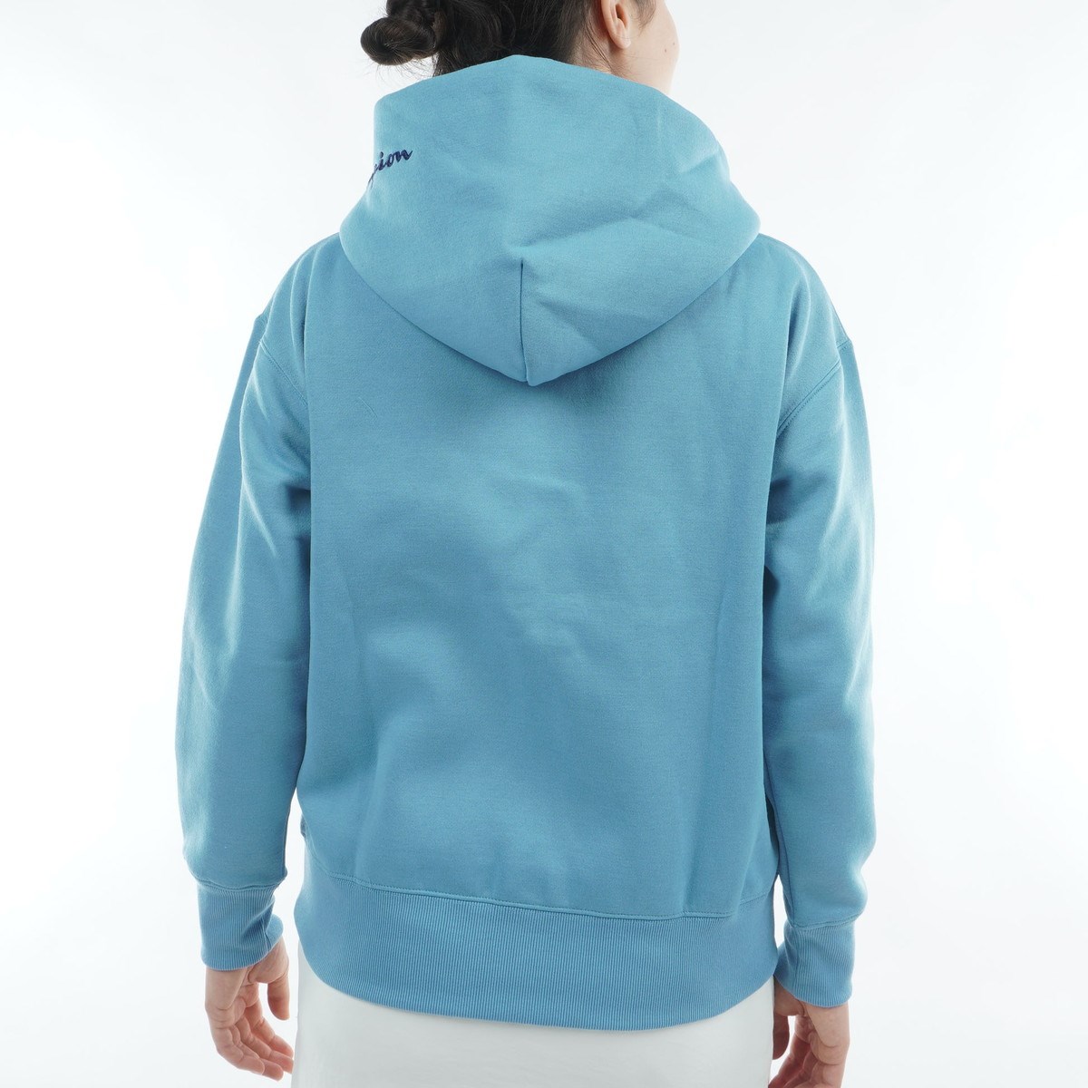 左胸にはCロゴとChampion®ロゴを組み合わせたグラフィックをサガラ刺繍で、フードの左側面にはChampion®ロゴを刺繍しています。