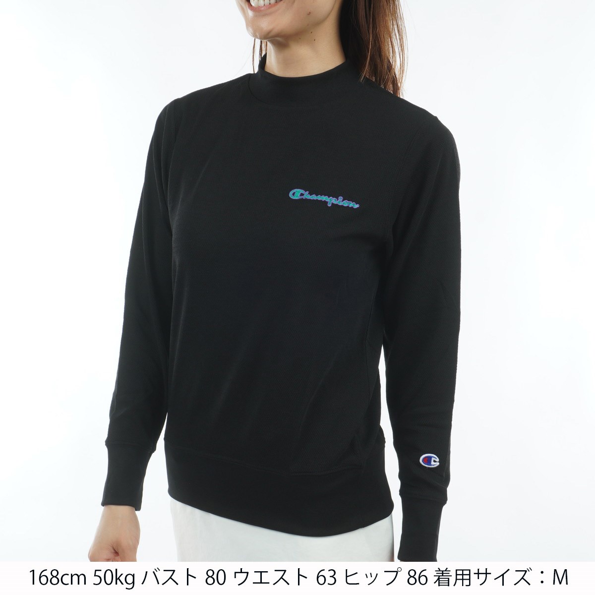 チャンピオンゴルフ Champion GOLF UVカット 速乾 ストレッチ スモールハニカムドライジャージ モックネック長袖シャツ M ブラック 090 レディス