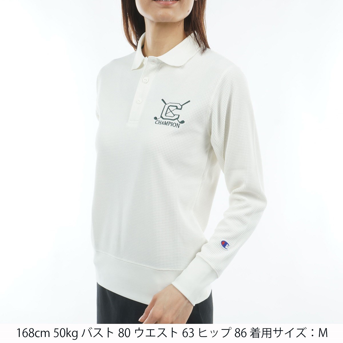 チャンピオンゴルフ Champion GOLF UVカット 速乾 保温 遮熱 ソフトサーモワッフル 長袖ポロシャツ L オフホワイト 020 レディス