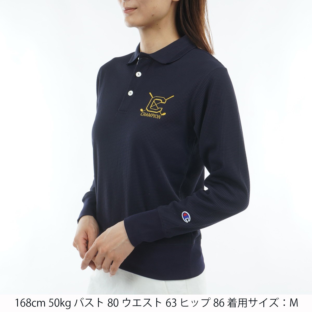 チャンピオンゴルフ Champion GOLF UVカット 速乾 保温 遮熱 ソフトサーモワッフル 長袖ポロシャツ L ネイビー 370 レディス