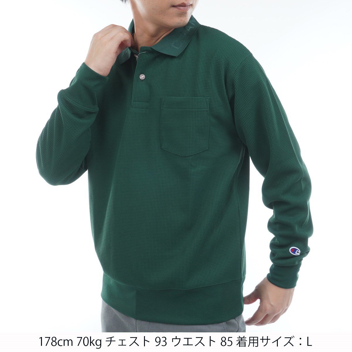 チャンピオンゴルフ Champion GOLF UVカット 速乾 保温 遮熱 ソフトサーモワッフル 長袖ポロシャツ L グリーン 540