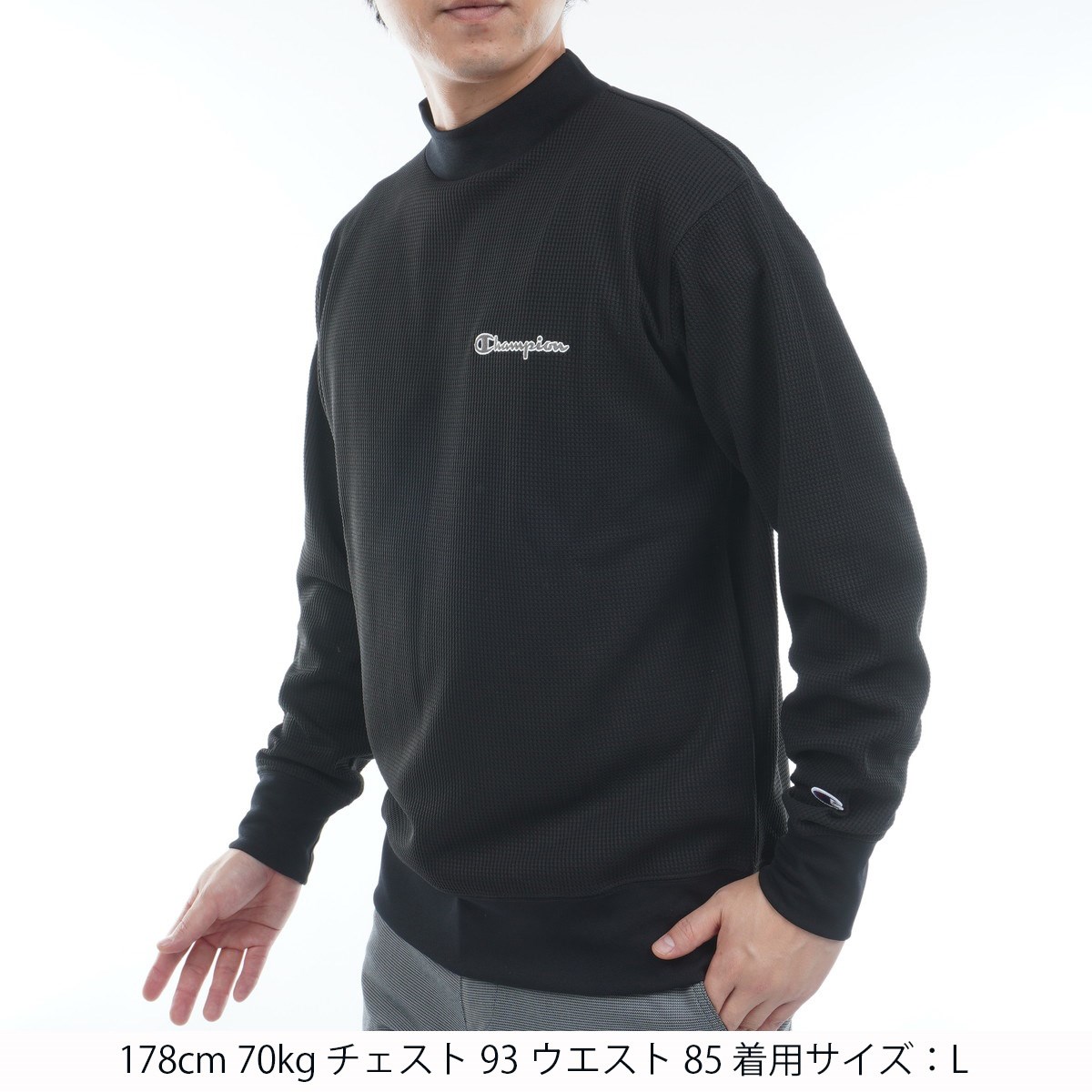 チャンピオンゴルフ Champion GOLF UVカット 速乾 保温 遮熱 ストレッチ ソフトサーモワッフル モックネック長袖シャツ XL ブラック 090