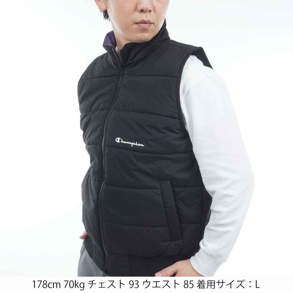 チャンピオンゴルフ Champion GOLF 撥水 防風 保温 ブライトストレッチクロス 中綿ジップベスト L ブラック 090