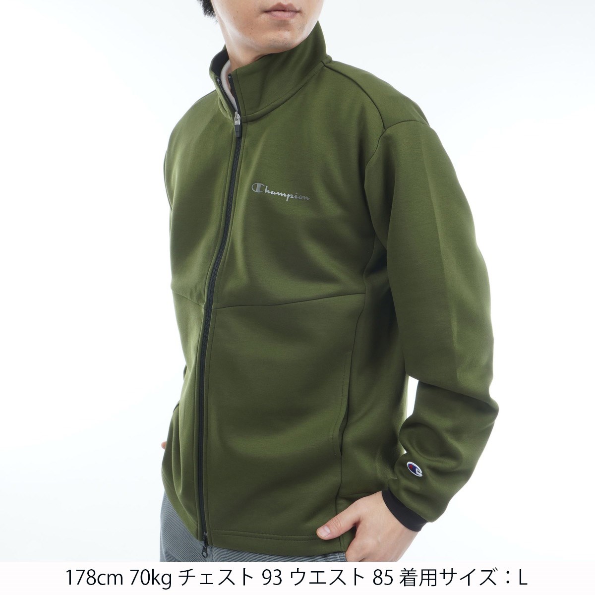 チャンピオンゴルフ Champion GOLF ストレッチ 保温 テックウイーブ3LS 三層構造 スウェットジップジャケット M オリーブ 655