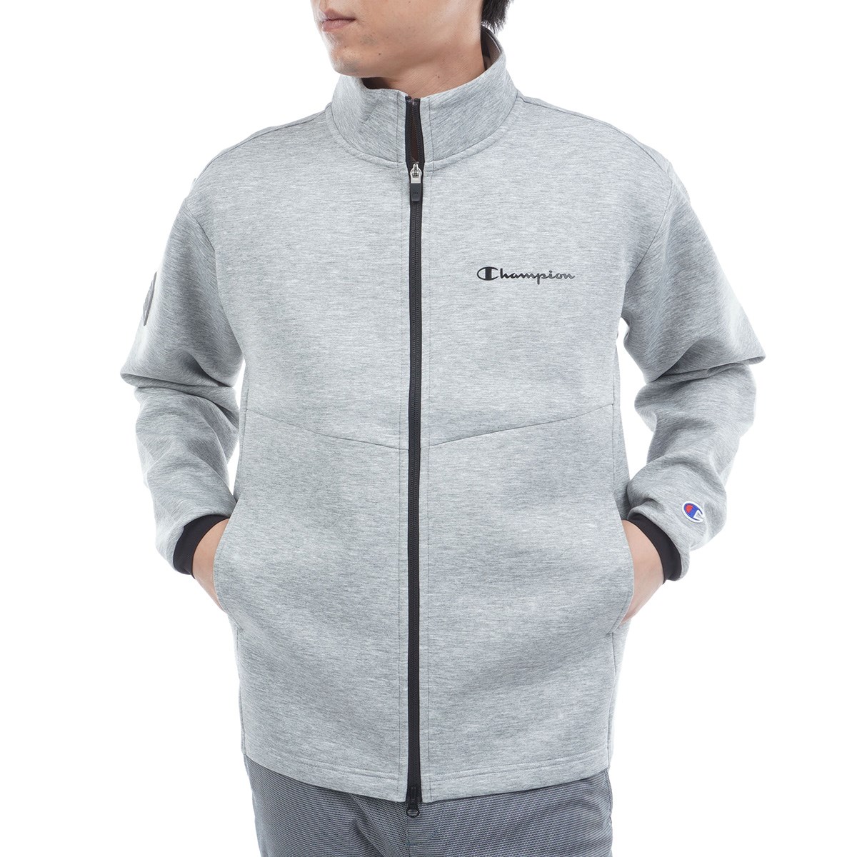 胸にはChampion®ロゴをラバープリントで入れ、右袖には「CHAMPION」と「AUTHENTIC AMERICAN ATHLETICWEAR(オーセンティック アメリカン アスレチックウェア)」を組み合わせてエンボスで表現したワッペンを付けています。