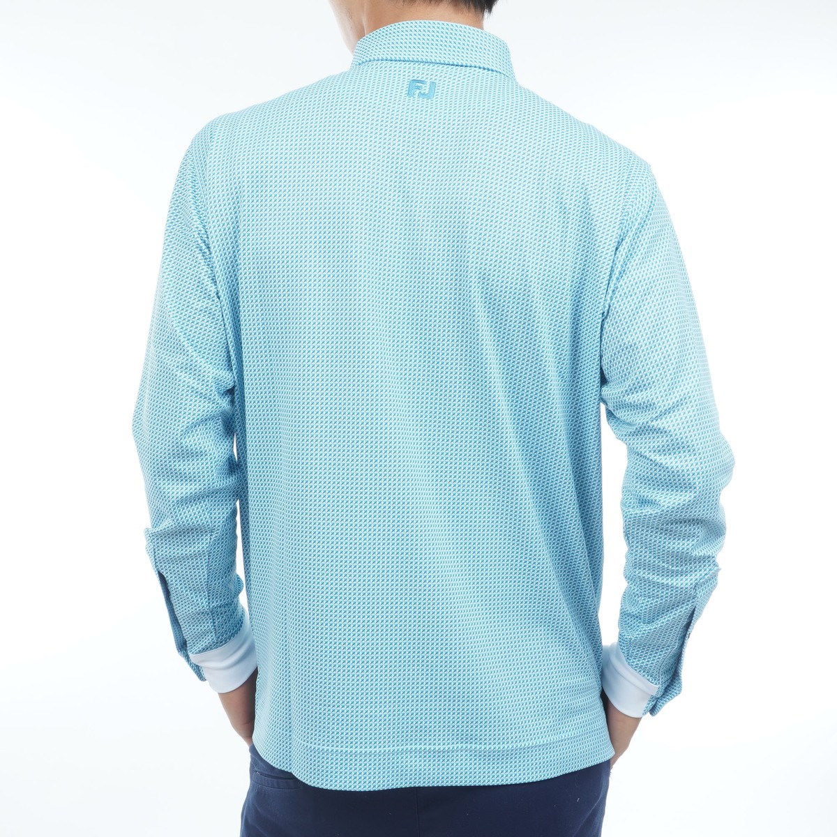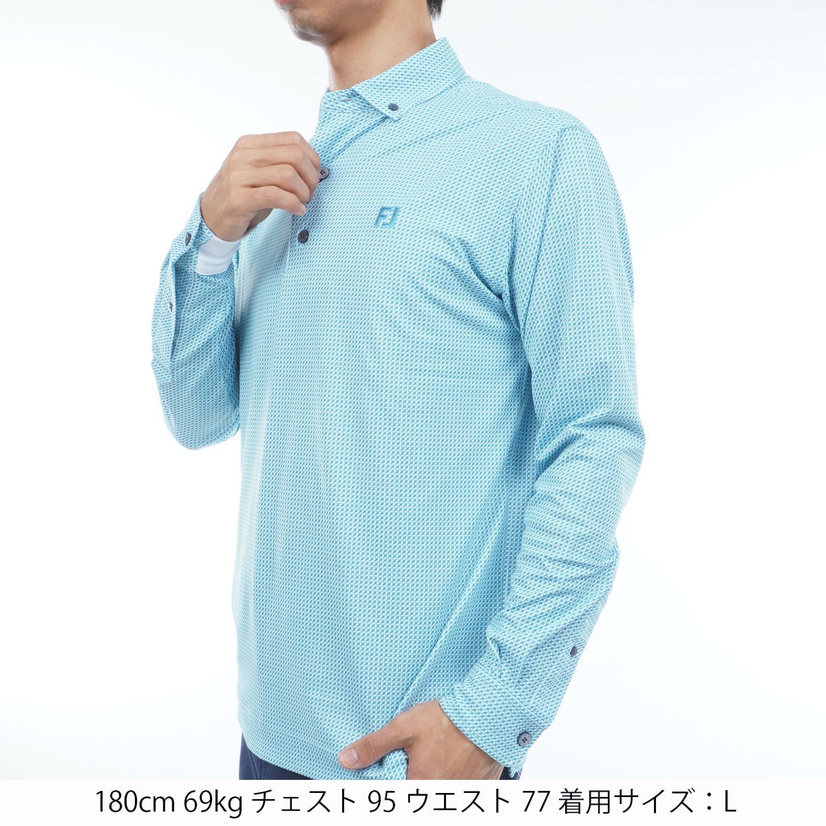 フットジョイ Foot Joy ストレッチ 3Dピラミッドプリント ボタンダウン長袖ポロシャツ M エアブルー/ホワイト/ハイタイド