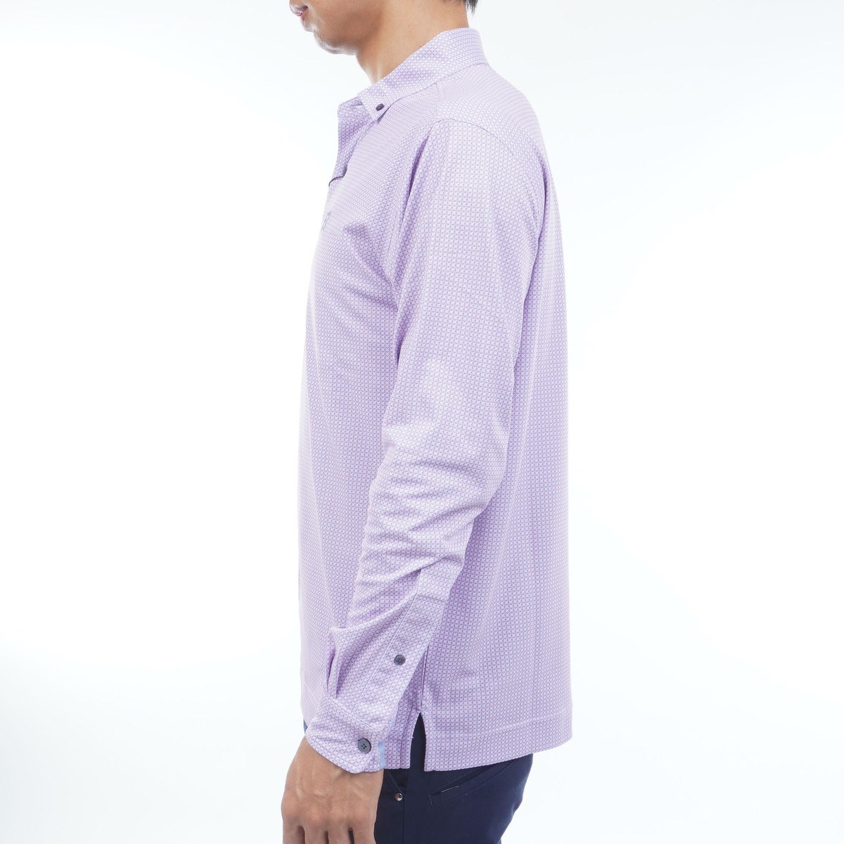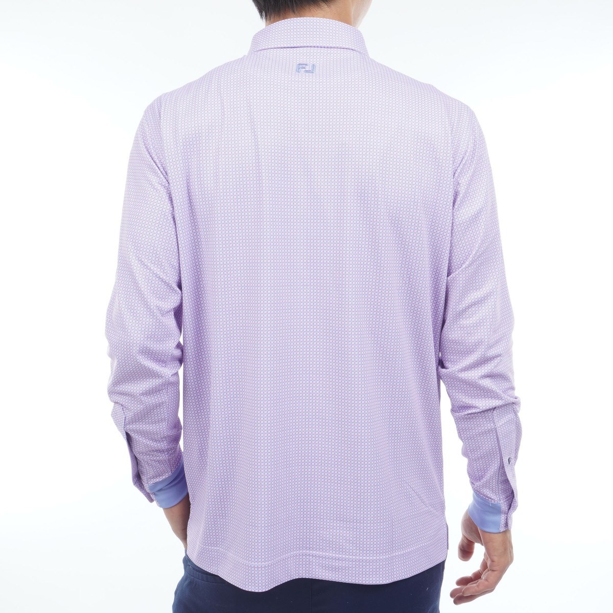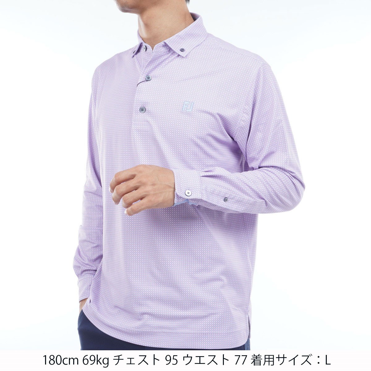 フットジョイ Foot Joy ストレッチ 3Dピラミッドプリント ボタンダウン長袖ポロシャツ XL オーキッド/ペリウィンクル/アイスウォーター
