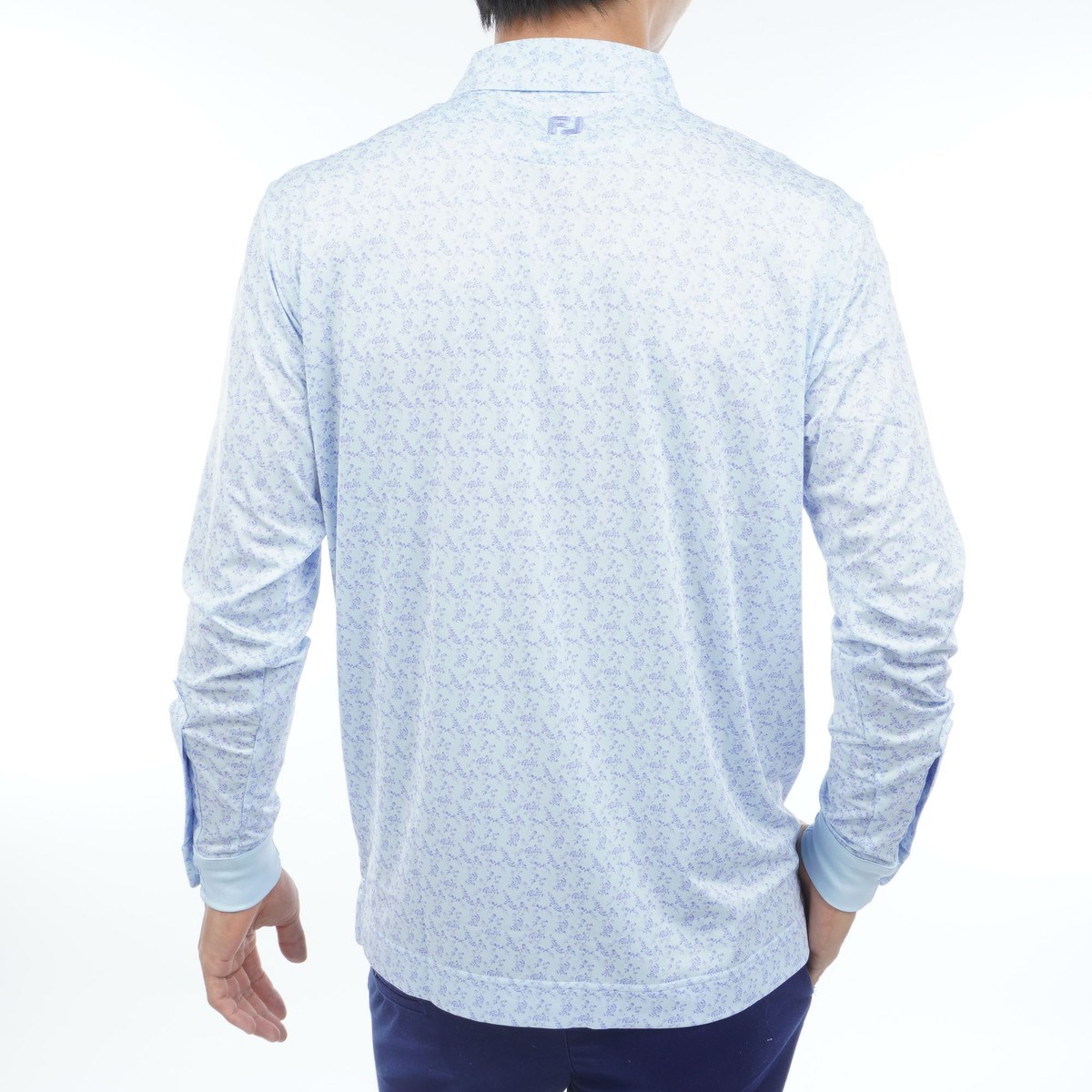 フットジョイ Foot Joy ストレッチ ヴィンテージフラワープリント 長袖ポロシャツ M ペリウィンクル/アイスウォーター
